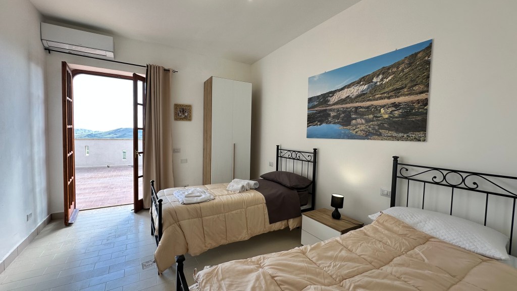 Camera luminosa con due letti singoli, dove il mare è protagonista e il relax è assicurato.